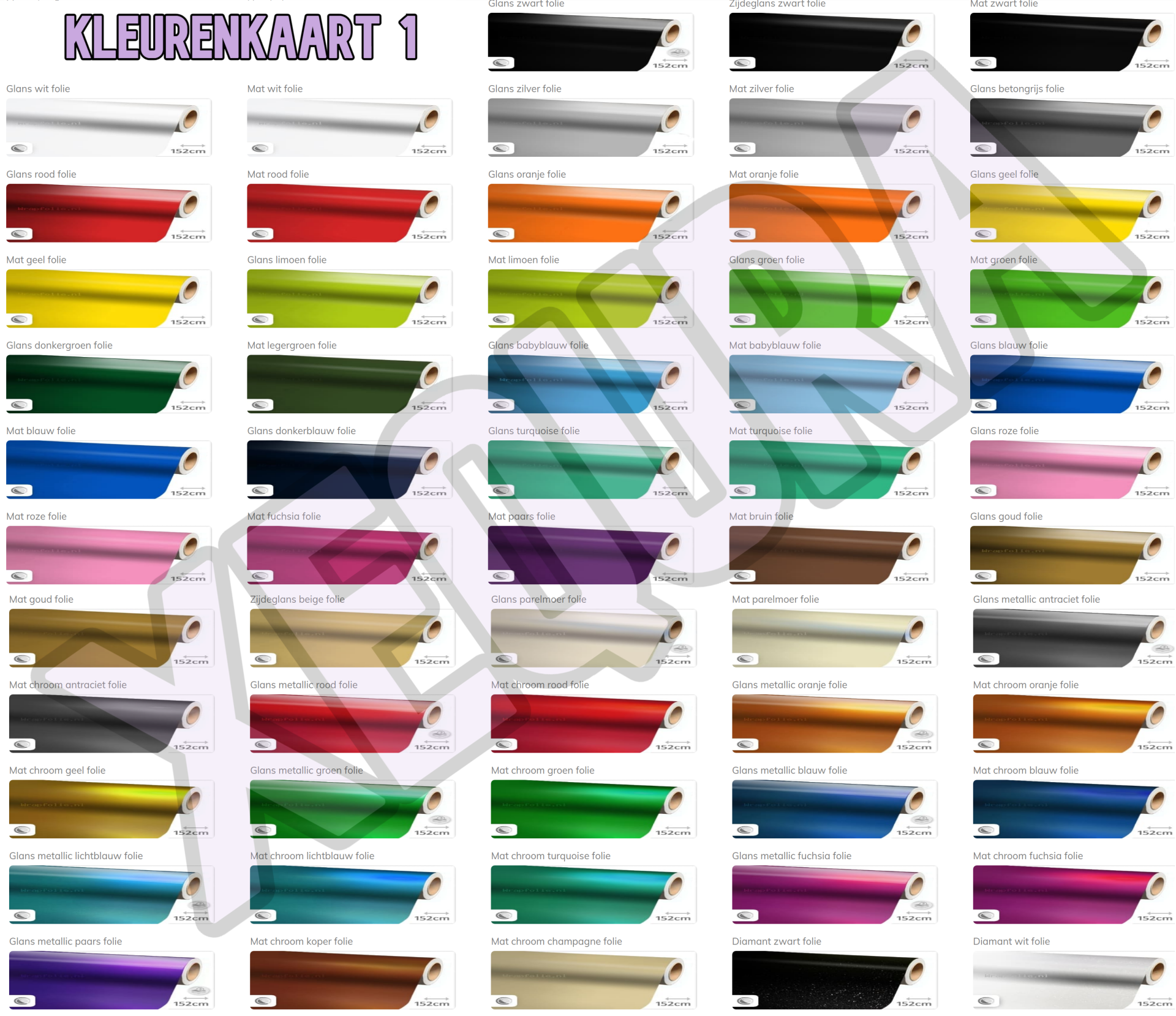 - Zie kleurenkaarten hiernaast voor alle kleuren