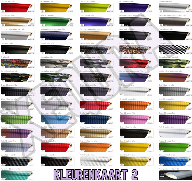 - Zie kleurenkaarten hiernaast voor alle kleuren